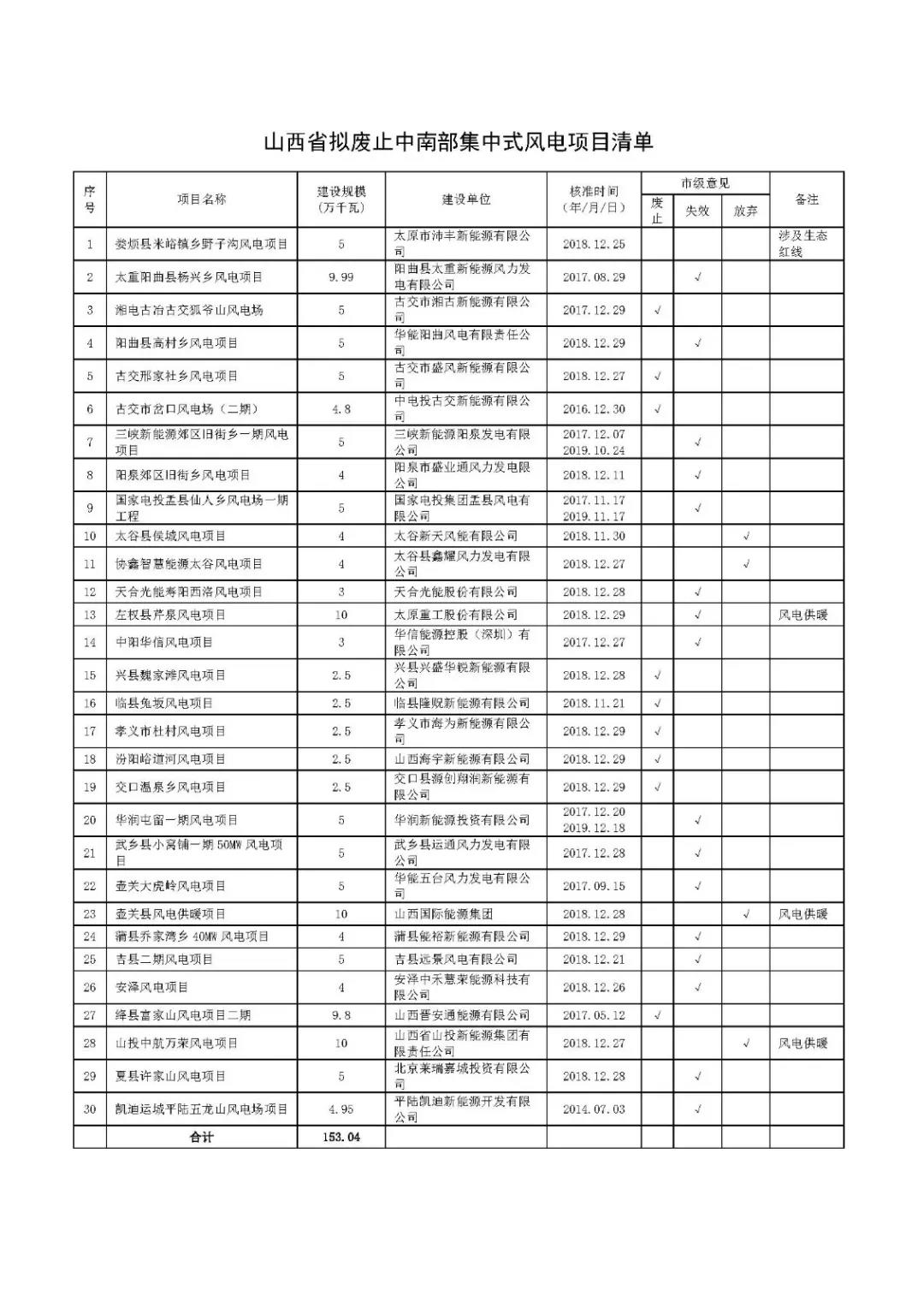 | 山西省擬再廢止30個風(fēng)電項目!總計規(guī)模153.04萬千瓦 |