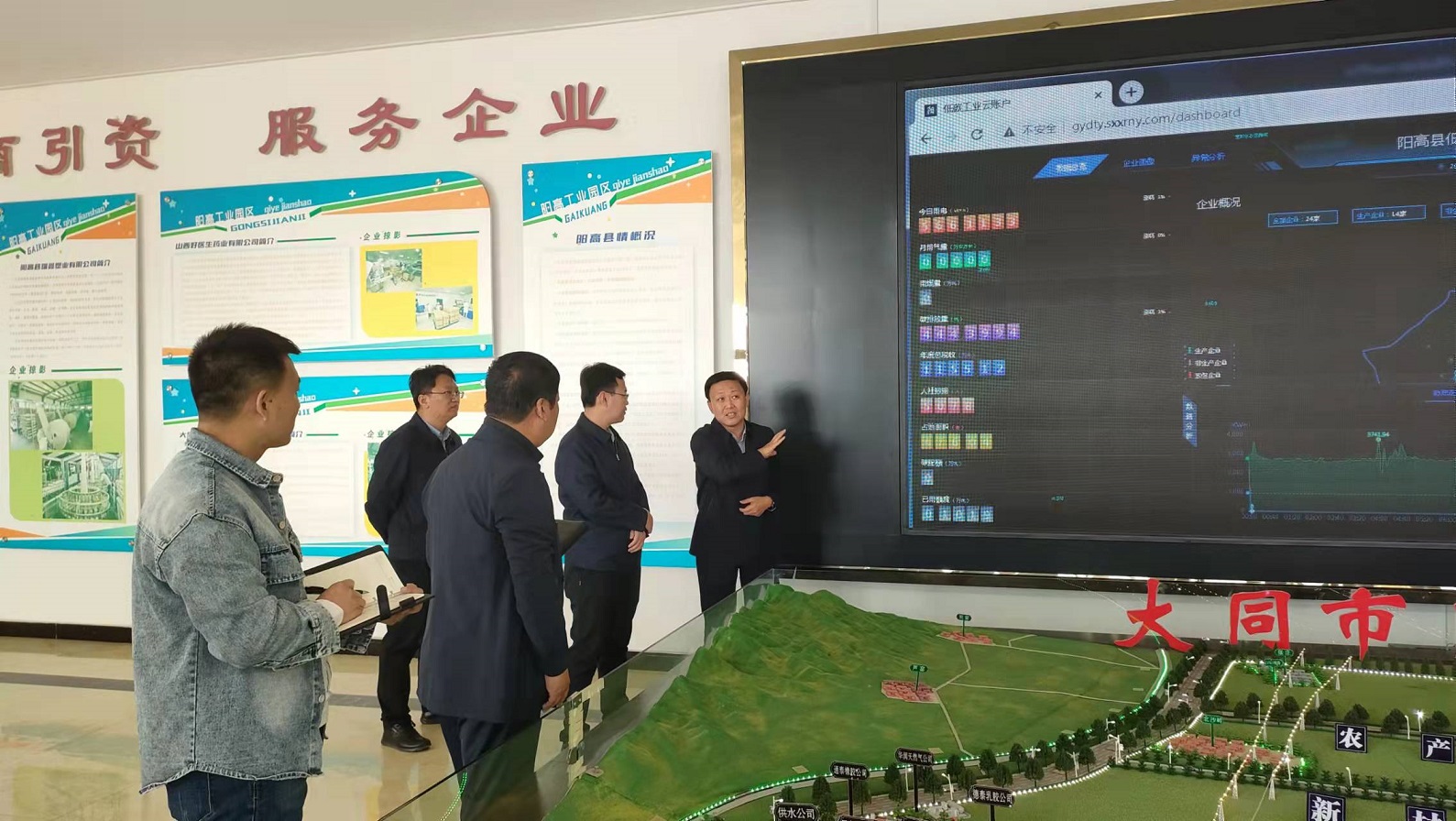 11月2日,陽高縣委書記丁國華、縣長謝云、副縣長任雪峰一行蒞臨陽高縣龍泉工業(yè)園區(qū)參觀調(diào)研,并對祥睿主導(dǎo)建設(shè)的陽高縣低碳工業(yè)云賬戶平臺情況進(jìn)行了考察。