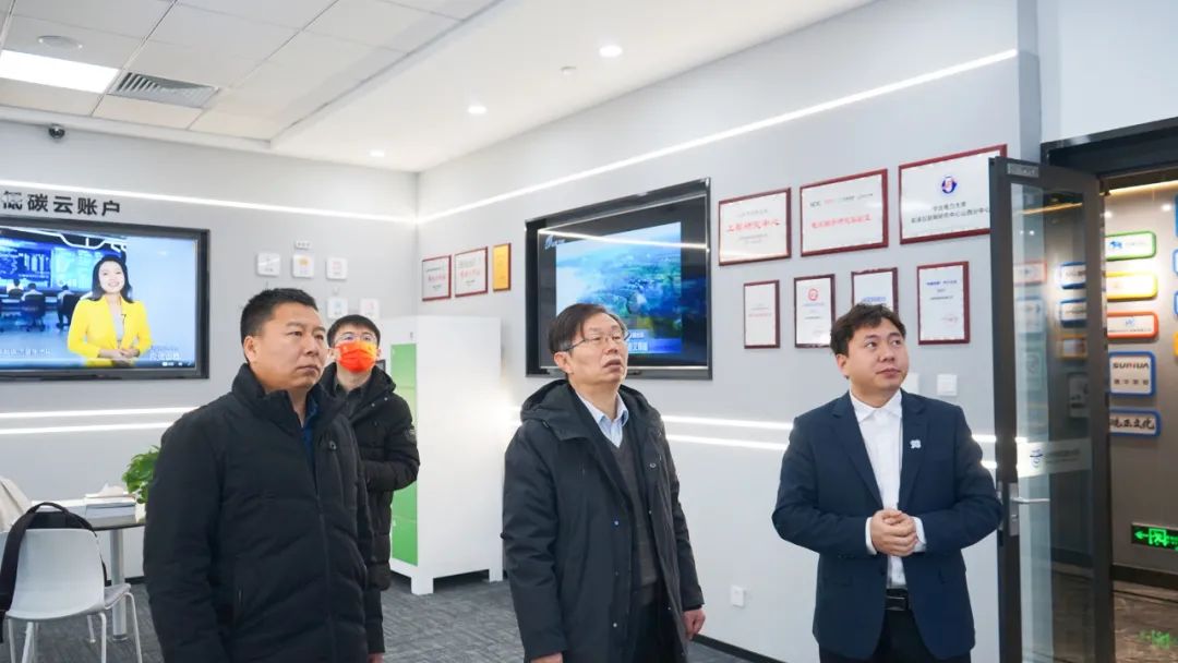 2月14日,華北電力大學(xué)能源互聯(lián)網(wǎng)研究中心主任、中國能源研究會能源互聯(lián)網(wǎng)專委會主任曾鳴、副主任王永利、博士后劉英新一行蒞臨祥睿能源低碳云賬戶體驗(yàn)中心參觀調(diào)研。祥睿能源董事長王正通、總經(jīng)理郝明淵、總工程師孫大偉等陪同調(diào)研。