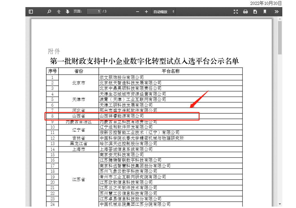 近日,工業(yè)和信息化部公示了第一批財政支持中小企業(yè)數字化轉型試點入選平臺名單,山西祥睿能源有限公司名列其中,是山西省唯一一家入選企業(yè)。