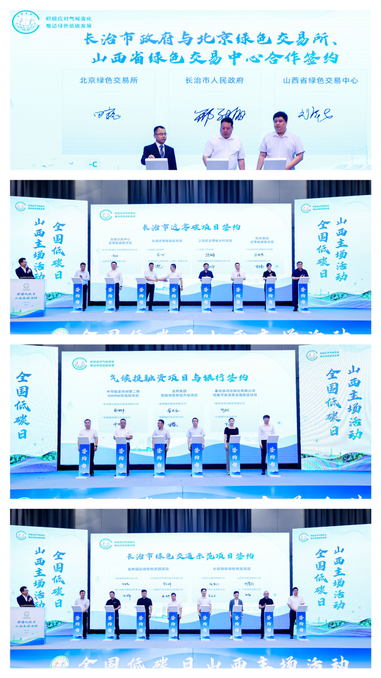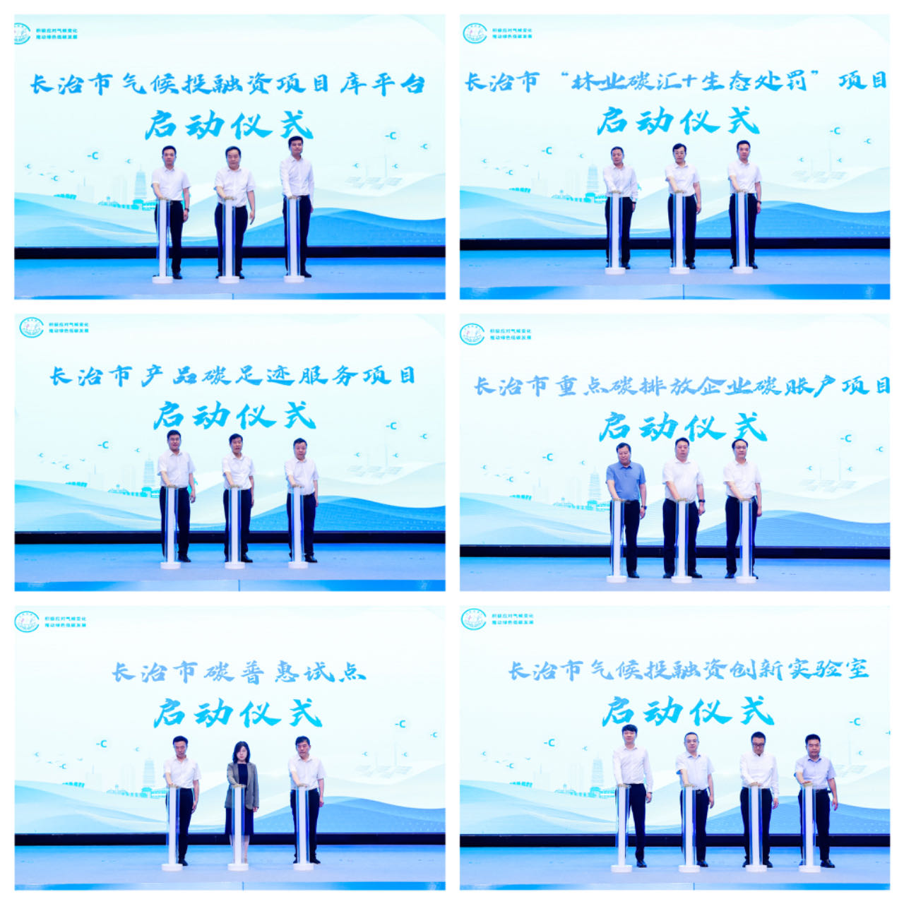 在長治市氣候投融資項目啟動儀式上,長治市氣候投融資項目庫平臺、長治市“林業(yè)碳匯+生態(tài)處罰”項目、長治市產(chǎn)品碳足跡服務項目、長治市重點碳排放企業(yè)碳賬戶項目、長治市碳普惠試點、長治市氣候投融資創(chuàng)新實驗室6個項目正式啟動;