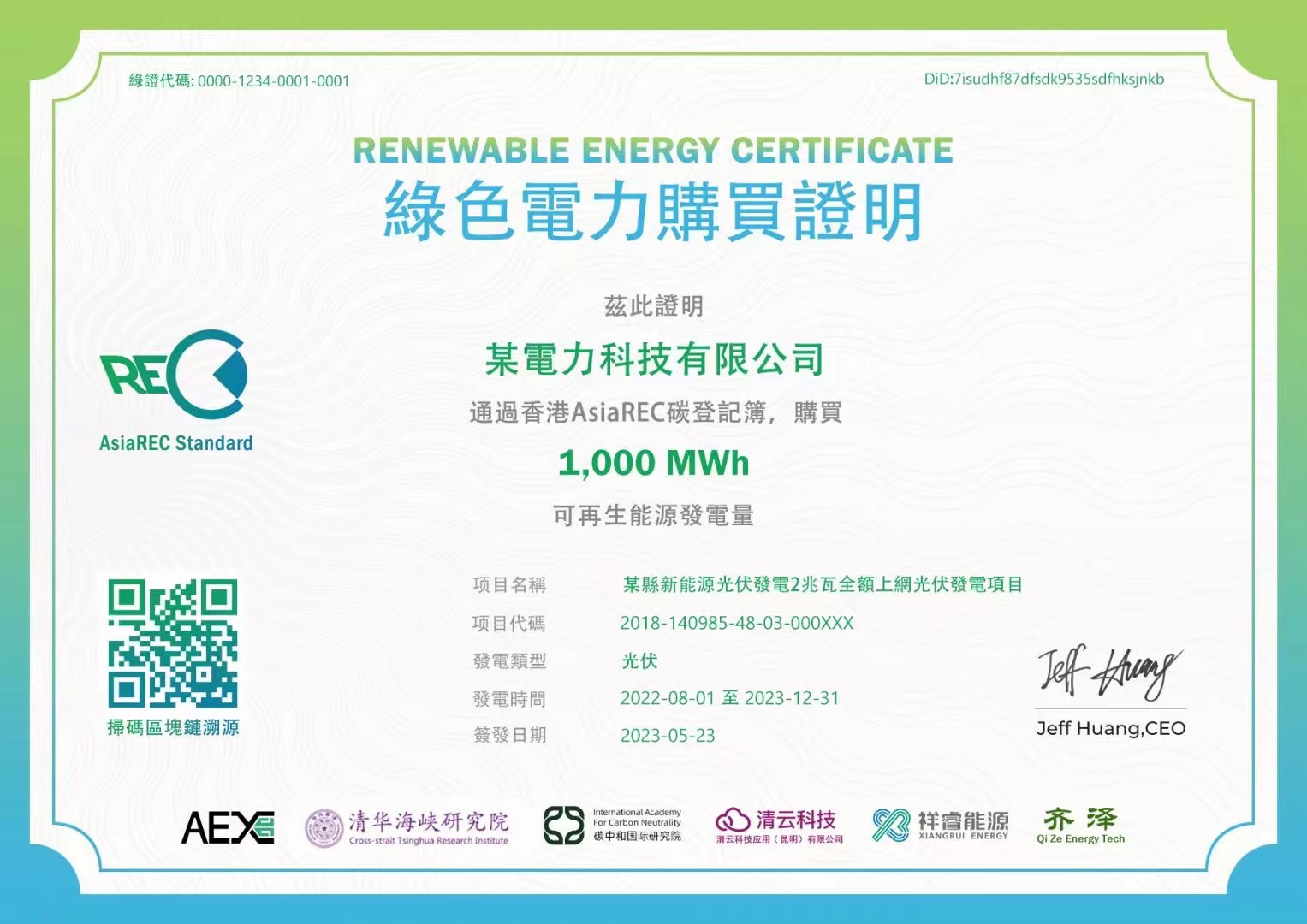 AsiaREC對標(biāo)國際碳登記簿的標(biāo)準(zhǔn)和業(yè)務(wù)流程,由AsiaREC區(qū)塊鏈溯源系統(tǒng)發(fā)行,利用區(qū)塊鏈、AI、物聯(lián)網(wǎng)技術(shù),致力于在香港構(gòu)建AsiaREC定價(jià)基準(zhǔn)促進(jìn)內(nèi)地和境外的能源綠色屬易,達(dá)到國際能源綠色屬性互識(shí)標(biāo)準(zhǔn),打造符合國際標(biāo)準(zhǔn)的綠色電力證書簽發(fā)認(rèn)證追溯系統(tǒng),為中國制造業(yè)和出口型企業(yè)提供按照國際標(biāo)準(zhǔn)設(shè)立、被歐盟認(rèn)可的碳減排證明系統(tǒng),助力企業(yè)應(yīng)對歐盟碳關(guān)稅。