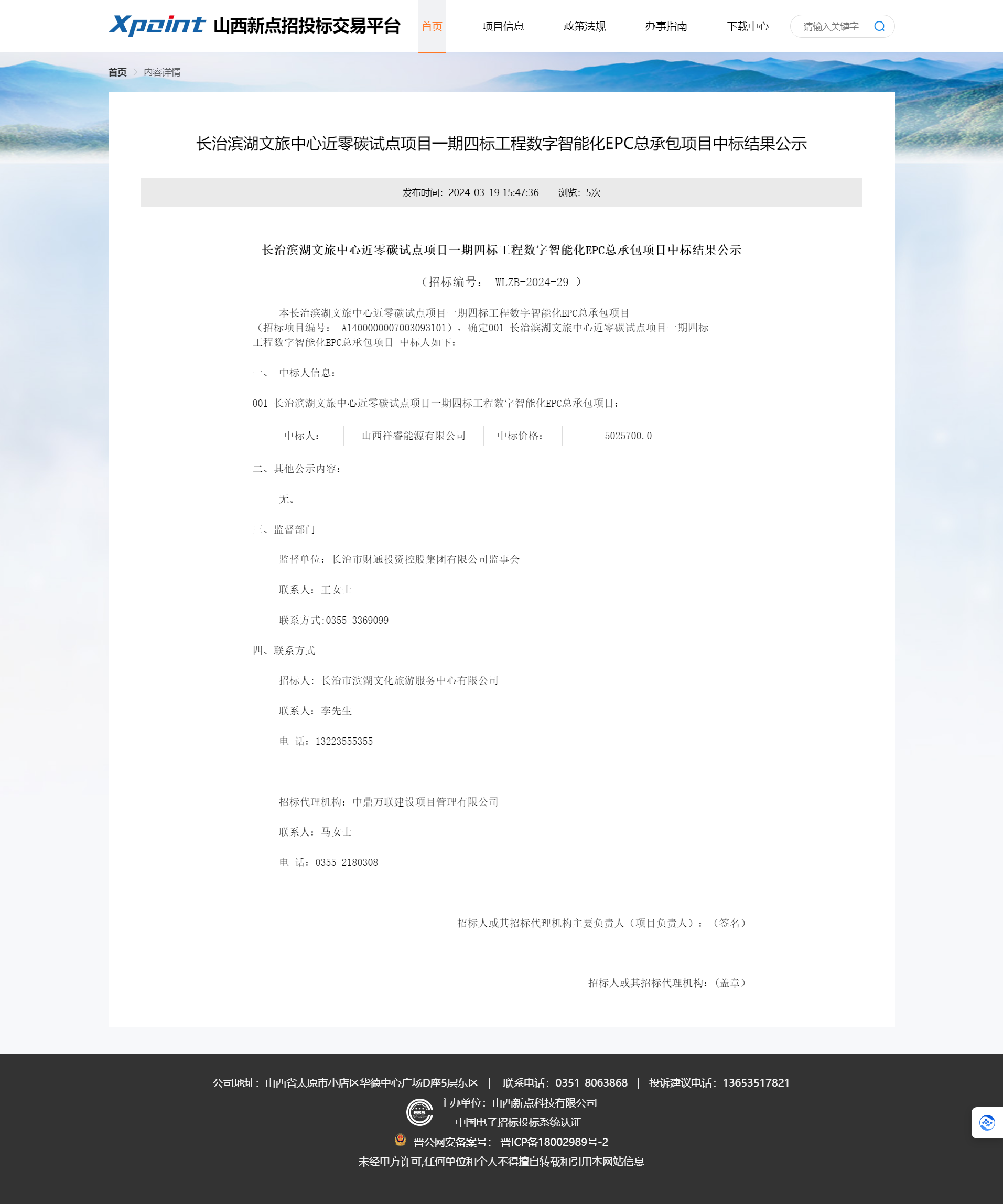 長(zhǎng)治濱湖文旅中心近零碳試點(diǎn)項(xiàng)目一期四標(biāo)工程數(shù)字智能化EPC總承包項(xiàng)目