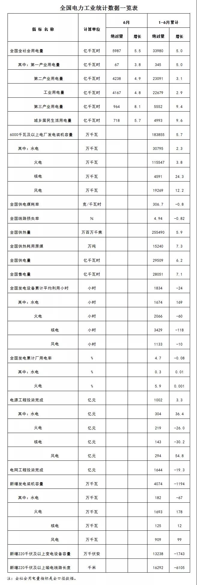 | 能源局發(fā)布1-6月份全國(guó)電力工業(yè)統(tǒng)計(jì)數(shù)據(jù) |