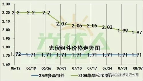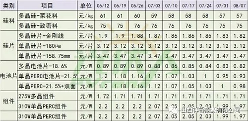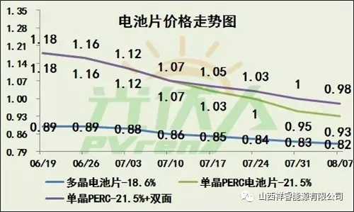 單晶PERC電價的價格相比6月份價格降幅超過20%。已經連續(xù)9個星期降價,相信很快將會傳到到組件端