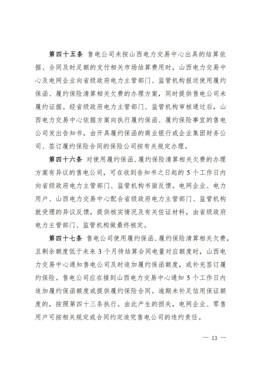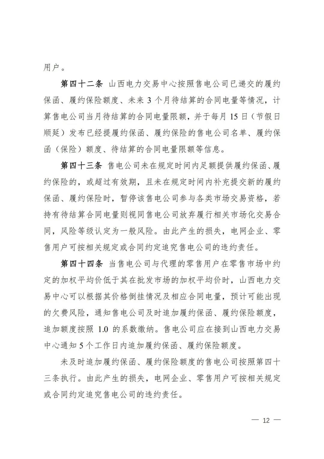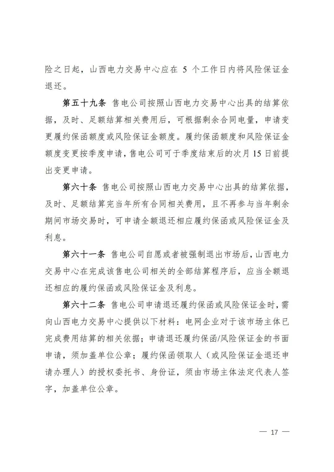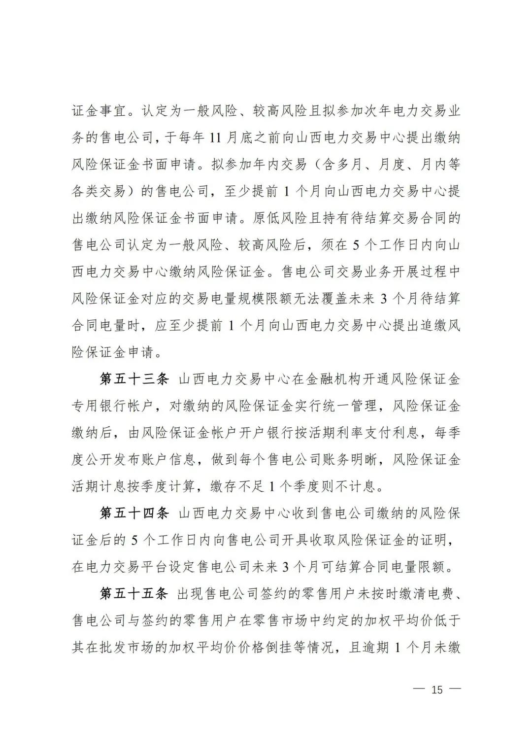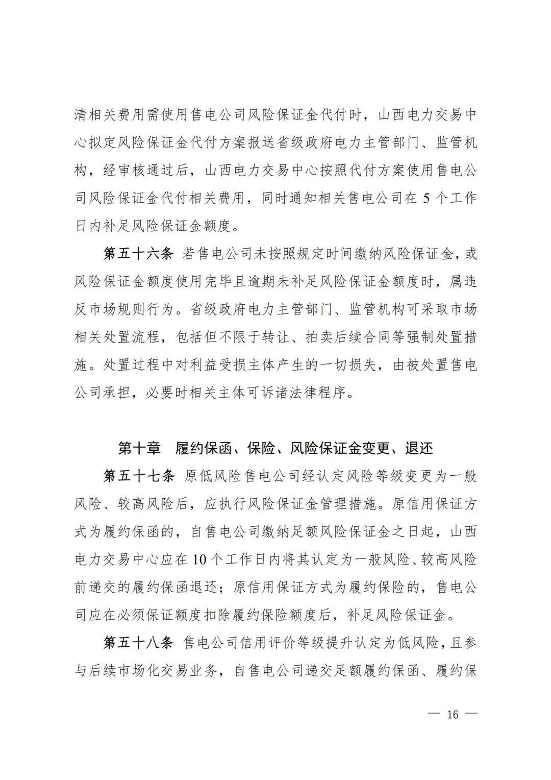 | 山西電力市場售電公司信用評價與風(fēng)險防范管理辦法:依據(jù)風(fēng)險級別執(zhí)行履約保函、保險或風(fēng)險保證金措施 |