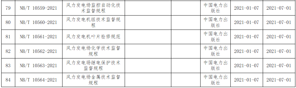 近日,國(guó)家能源局批準(zhǔn)《風(fēng)力發(fā)電場(chǎng)監(jiān)控自動(dòng)化技術(shù)監(jiān)督規(guī)程》、《風(fēng)力發(fā)電機(jī)葉片檢修規(guī)范》等113項(xiàng)能源行業(yè)標(biāo)準(zhǔn),其中涉及風(fēng)電標(biāo)準(zhǔn)37項(xiàng),2021年7月1日起實(shí)施。